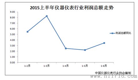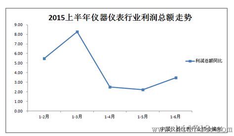2015年上半年我國(guó)儀器儀表營(yíng)收增長(zhǎng)變緩